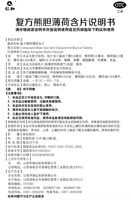 復方熊膽薄荷含片